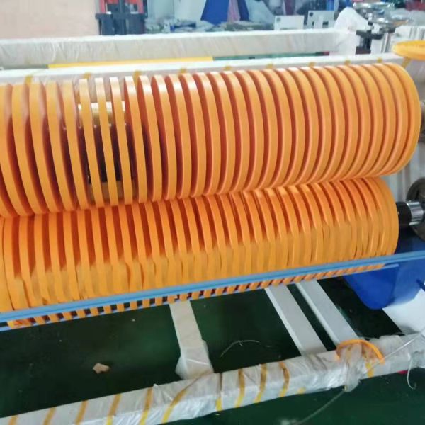 (2)鎢鋼刀,此種刀具脆性好,鋒利性好,一般用于對雙面膠等質(zhì)地較軟的材料的分切。該刀具的分切精密性好,分切的過程中比較少出現(xiàn)毛刺、絲邊等現(xiàn)象。但該刀具對于比較硬的材料容易出現(xiàn)崩刀。且刀具成本相對較貴,一般廠家僅用來分切膠帶、PE膜、美紋紙等質(zhì)地相對較軟的材料。